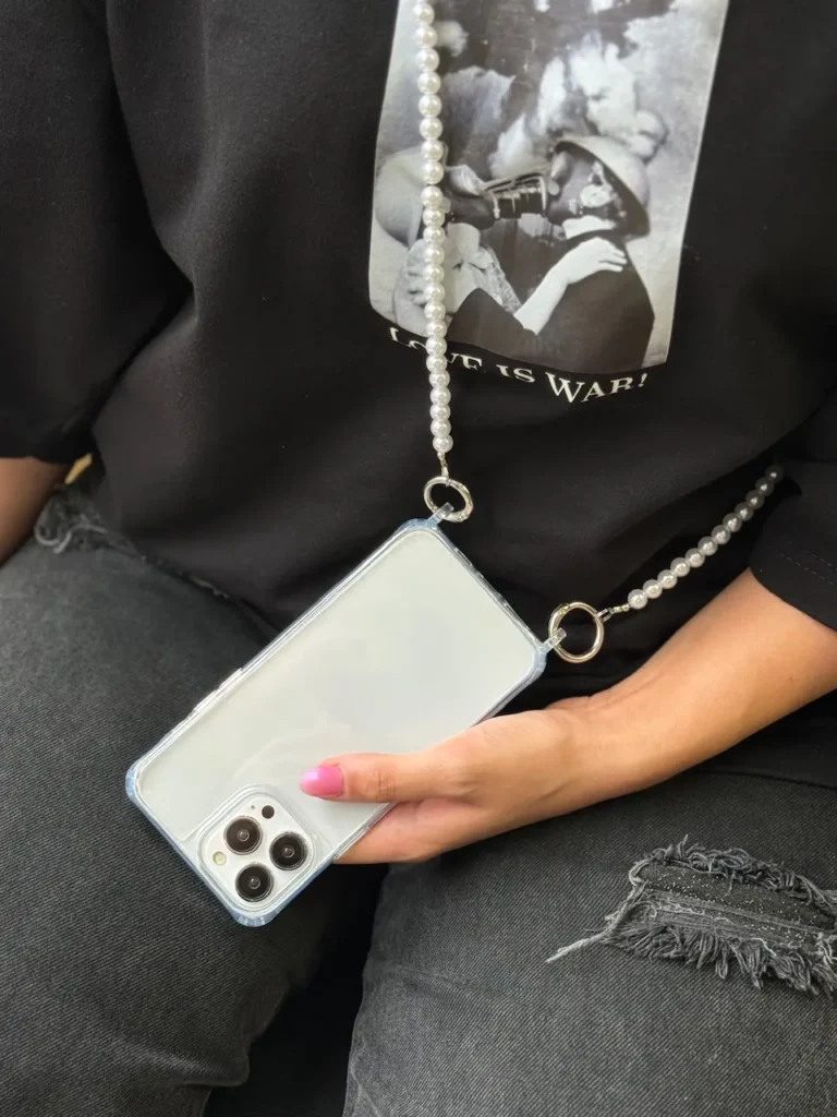 قاب شفاف دو قلاب با بند مرواریدی بلند (کدC1723)