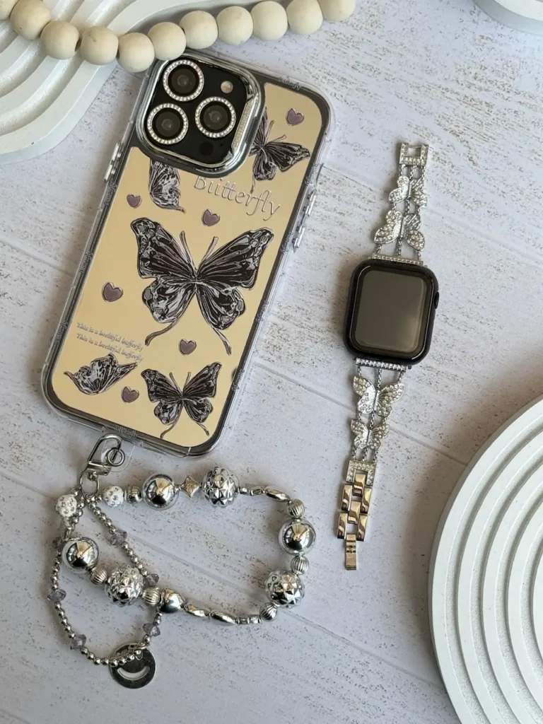 بند اپل واچ استیل پروانه نگین painted lady (کدw5062)