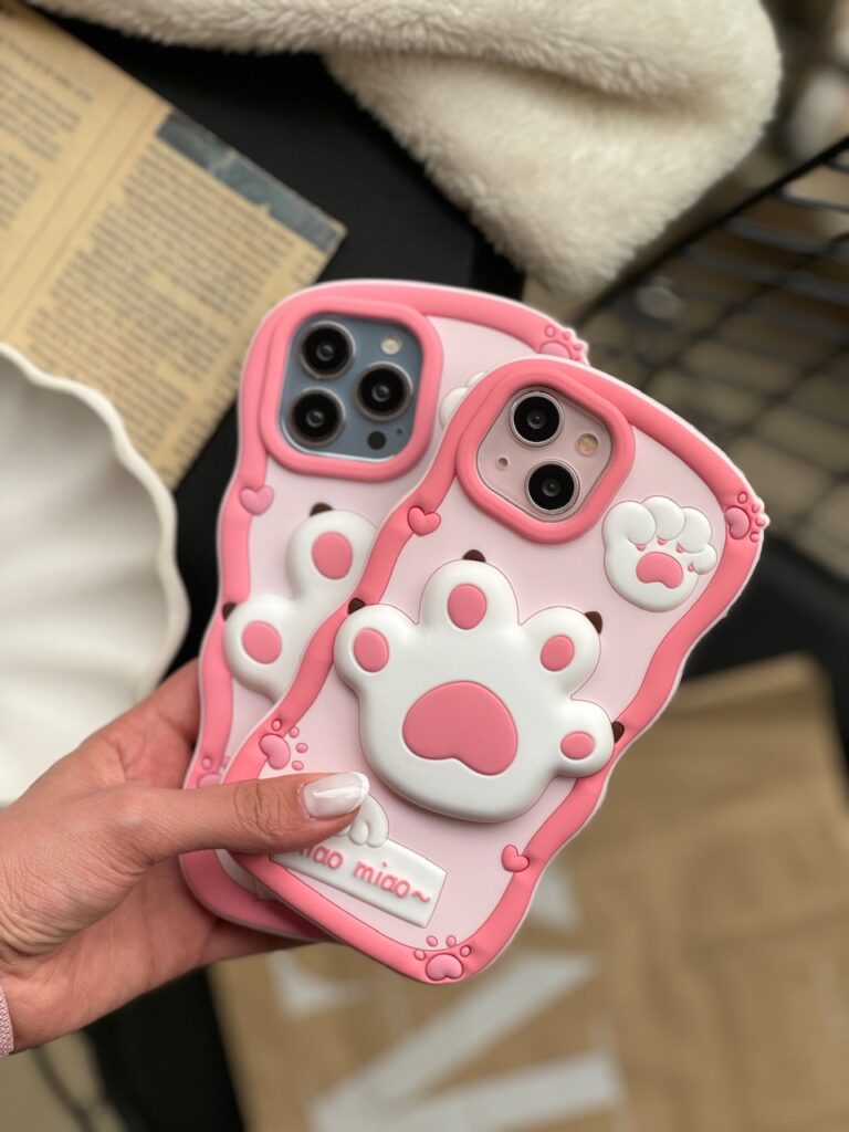 قاب پنجه گربه سیلیکونی صورتی آیفون / قابگوشی آیفون / فروش عمده قاب و لوازم جانبی موبایل/ دراپ شیپینگ