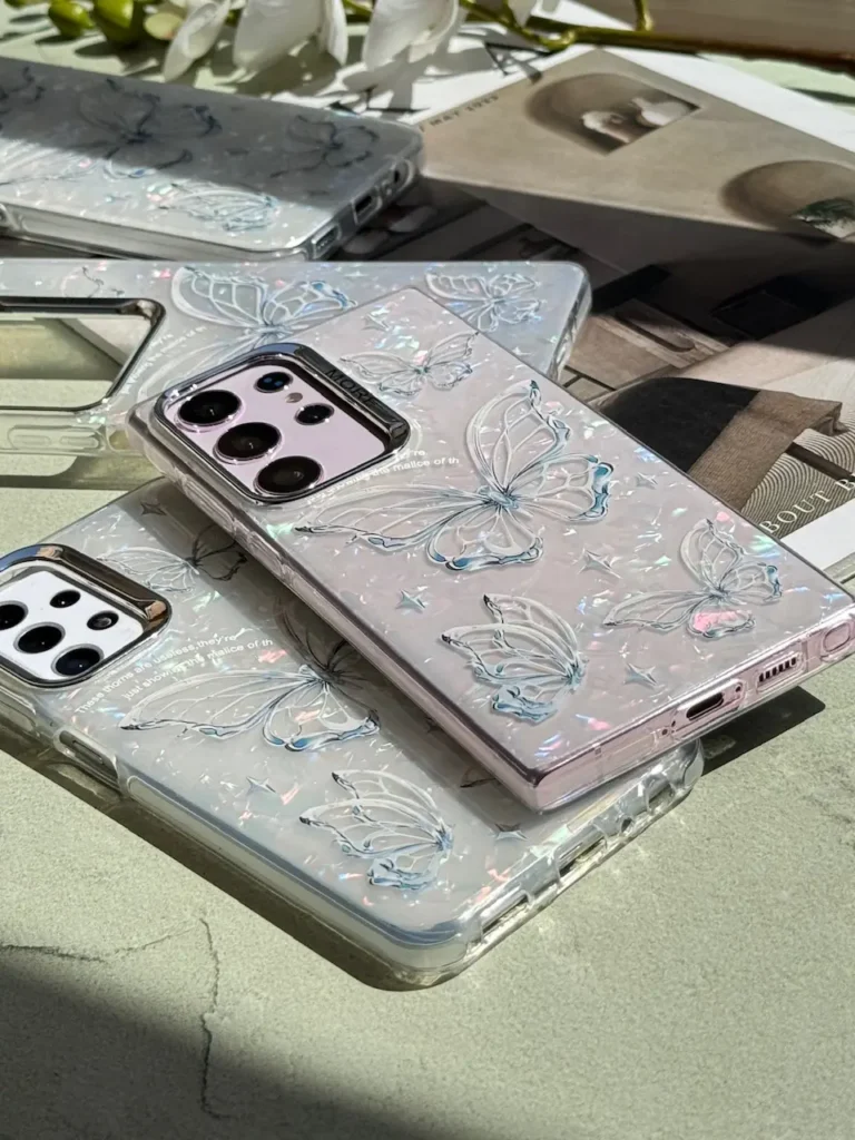 قاب پاپیون صورتی اکلیلی پشت طلق آیفون ، سامسونگ ، شیائومی (کدC1886)