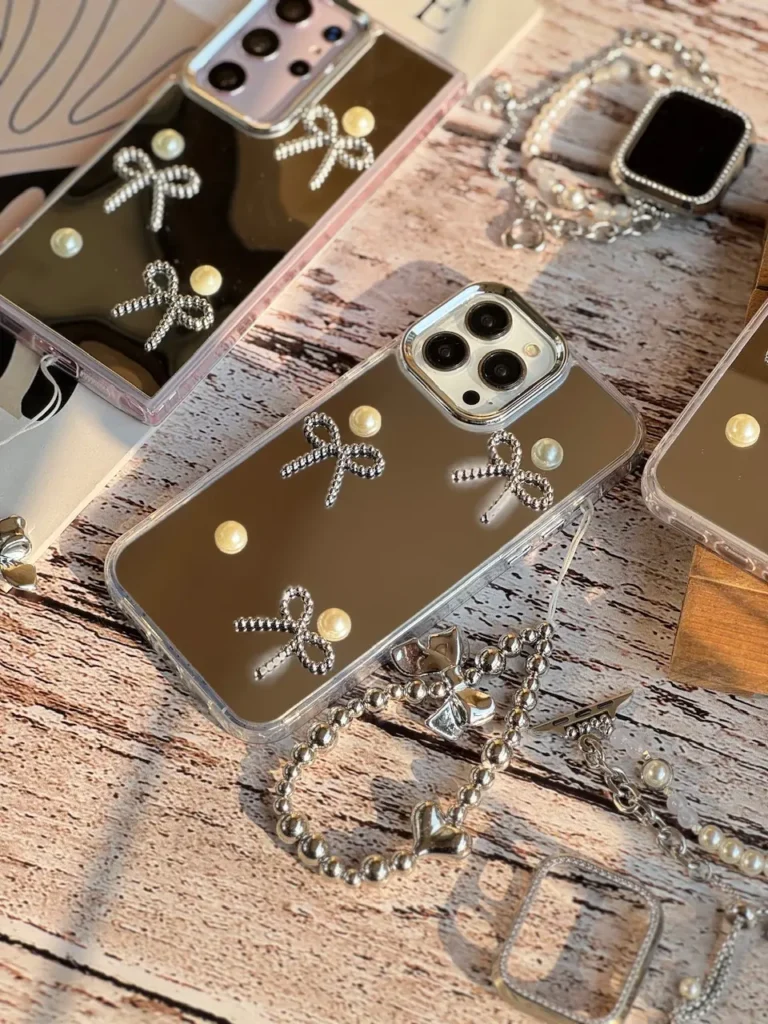 قاب آینه ای پاپیون مرواریدی با آویز (کدC1897)