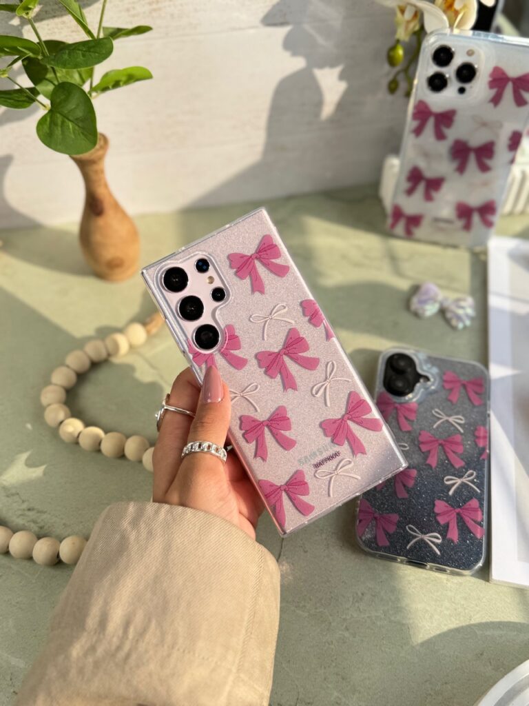 قاب پاپیون صورتی اکلیلی پشت طلق آیفون ، سامسونگ ، شیائومی (کدC1886)