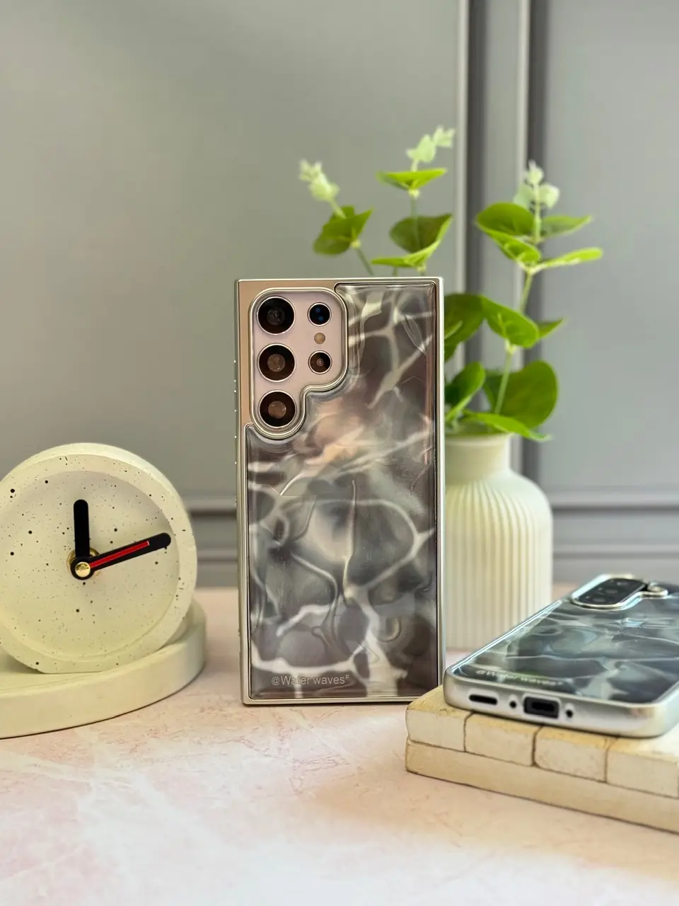 قاب Water Wave سامسونگ و شیائومی با طراحی موجدار کهربایی و افکت هولوگرامی، جلوهای خاص و متفاوت ایجاد میکند. این مدل در نور انعکاسهای زیبا و چندرنگ دارد که استایل گوشی را خاصتر میکند.