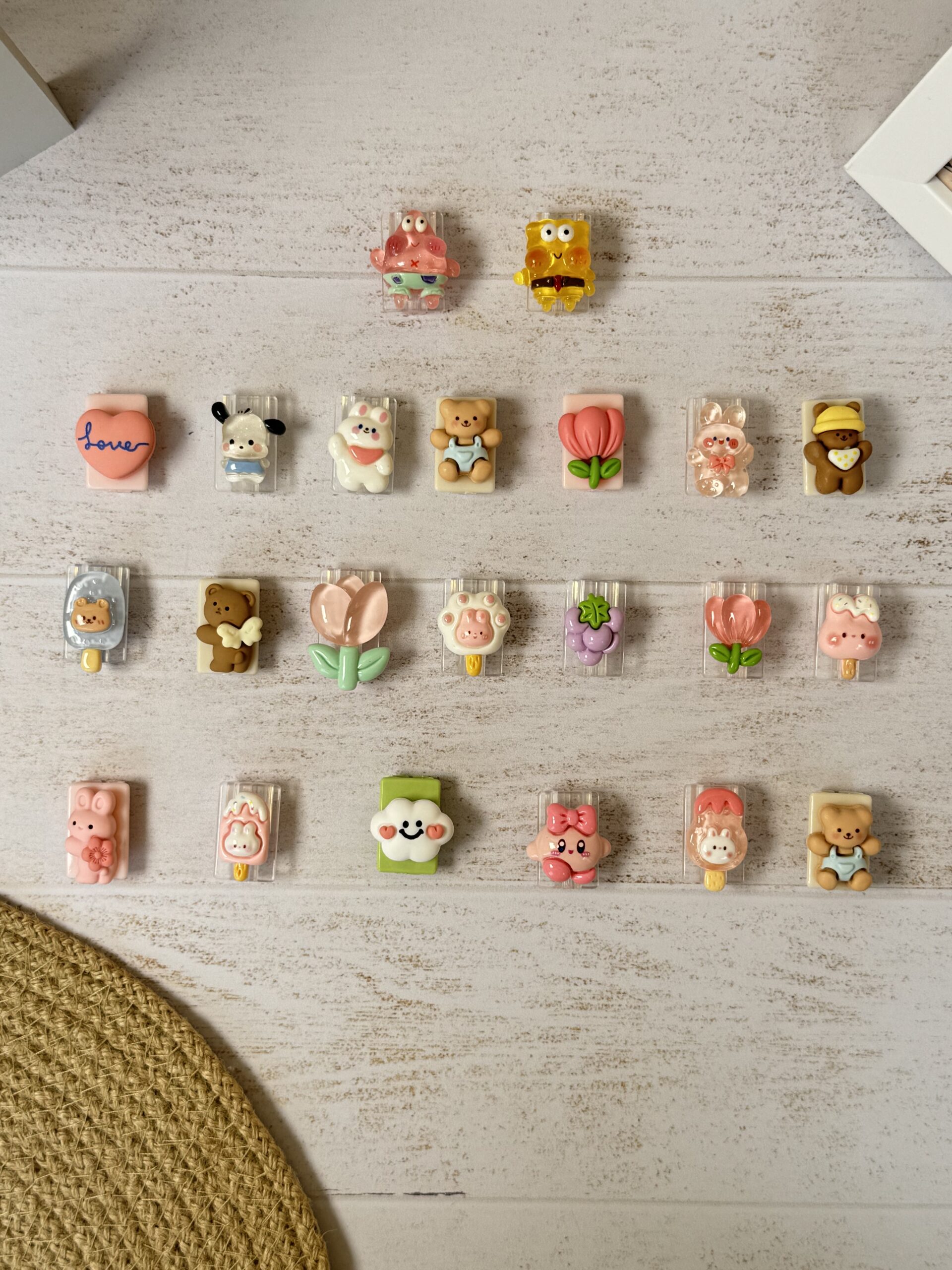 7-لاله مات ,9- خرس قهوه ای کلاه دار ,8-خرگوش شیشه ای ,6- خرس قوه ای سرهمی پوش ,5- خرگوش سفید ,4-سگ شیشه ای ,3-قلب لاو ,21-بستنی شیشه ای خرگوشی ,20-دیجی مون صورتی ,2- باب شیشه ای ,19- ابر ,18-بستنی خرگوش صورتی ,17-خرگوش صورتی گلدار ,16- آبنبات خرگوشی صورتی ,15- لاله شیشه ای کوچک ,14-انگور ,13-بستنی پنجه سفید ,12-لاله شیشه ای بزرگ ,11-خرس بالدار ,10-بستنی چوبی سر خرس ,1-پاتریک شیشه ای |