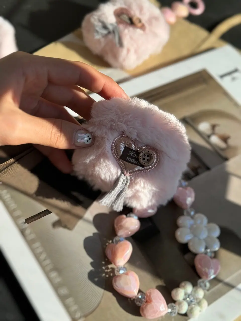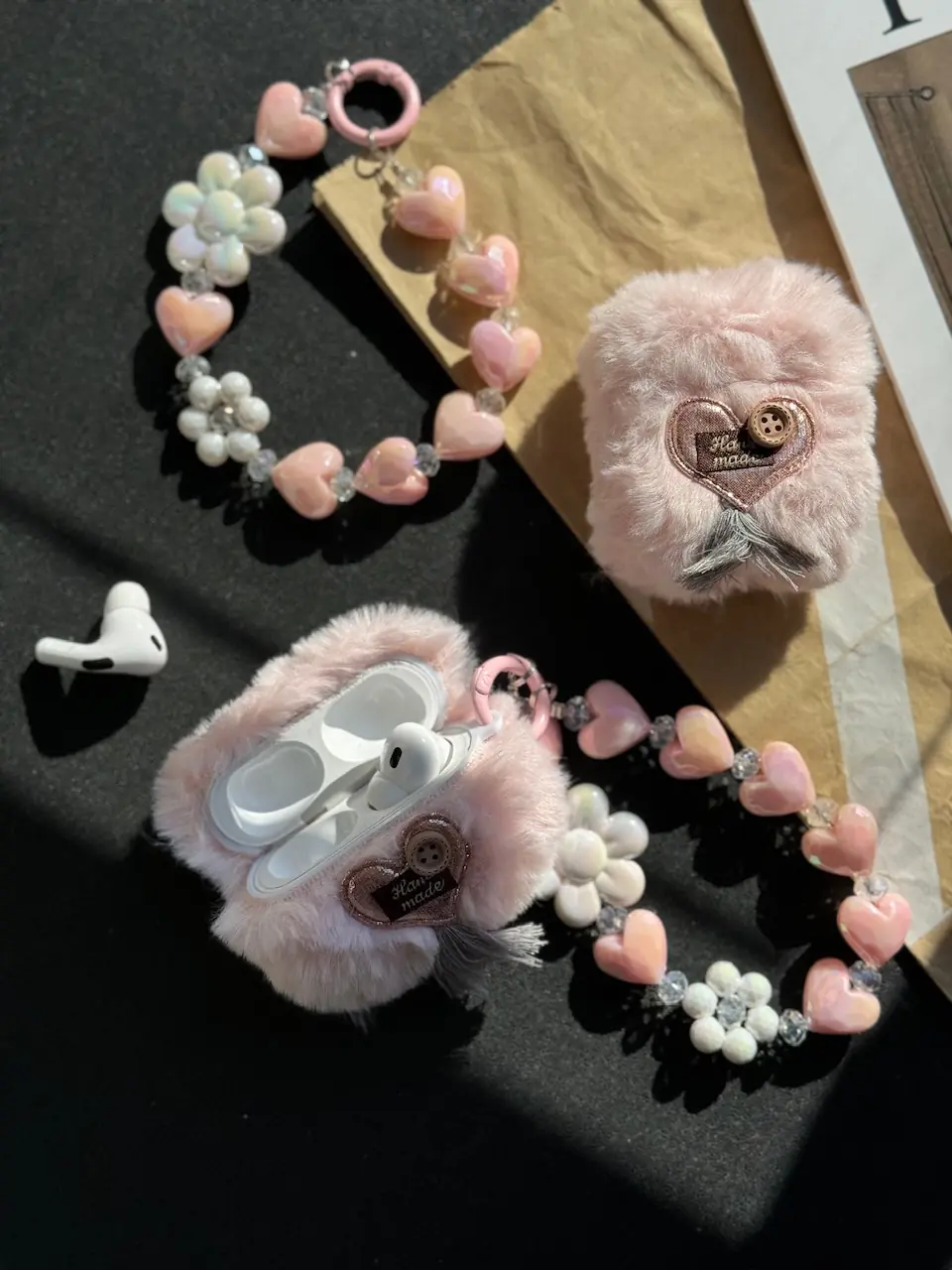 کاور ایرپاد پشمالو صورتی قلبی با آویز (کدC0073)