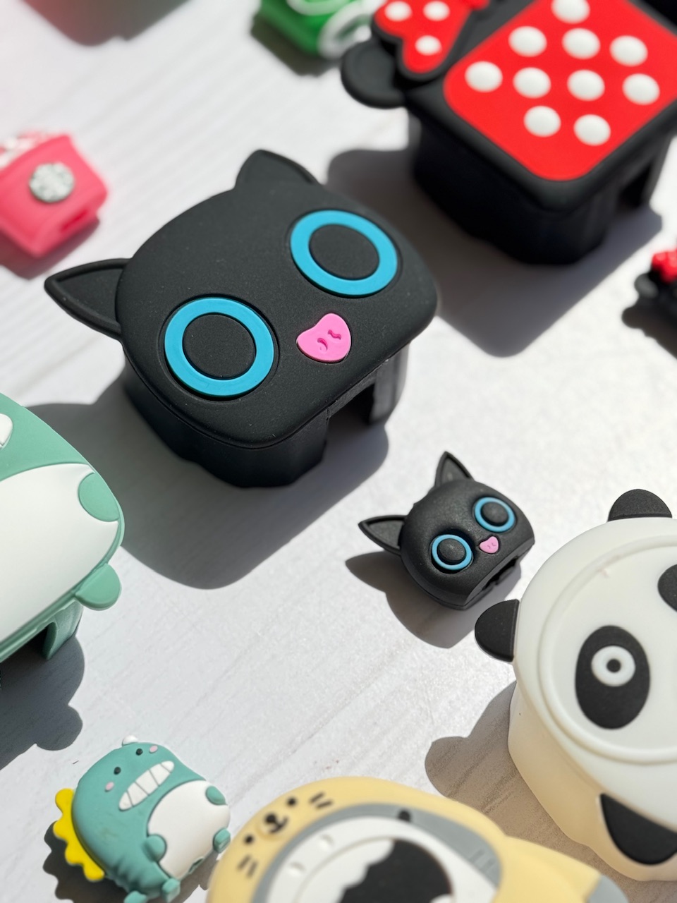 6-گربه چشم تیله ای ,3-هانیکن ,4-مینیون ,5-بچه دایناسور ,2-استارباکس صورتی ,8-هپل شاخ دار ,7- مینی موس خال خالی ,12-بول داگ ,10-پاندا ,11-مینی موس صورت ,1-استارباکس سفید ,9- کوسه |