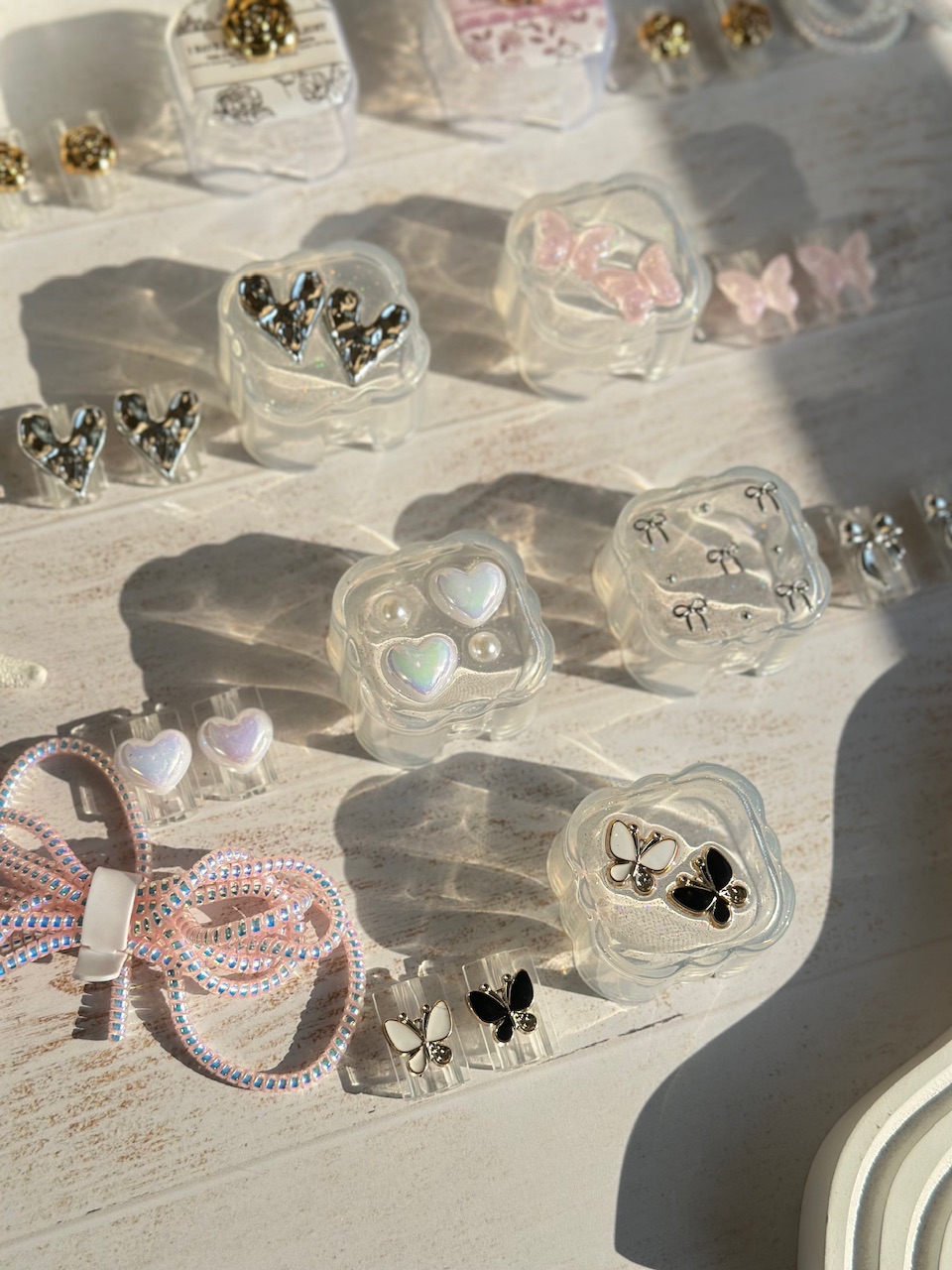 1-گل طلایی زمینه کرم ,2-گل طلایی زمینه صورتی ,3-قلب دفرمه ,4-پروانه صورتی ,5-قلب هولوگرامی ,6-پاپیون اکلیلی ,7-پروانه سفید مشکی |
