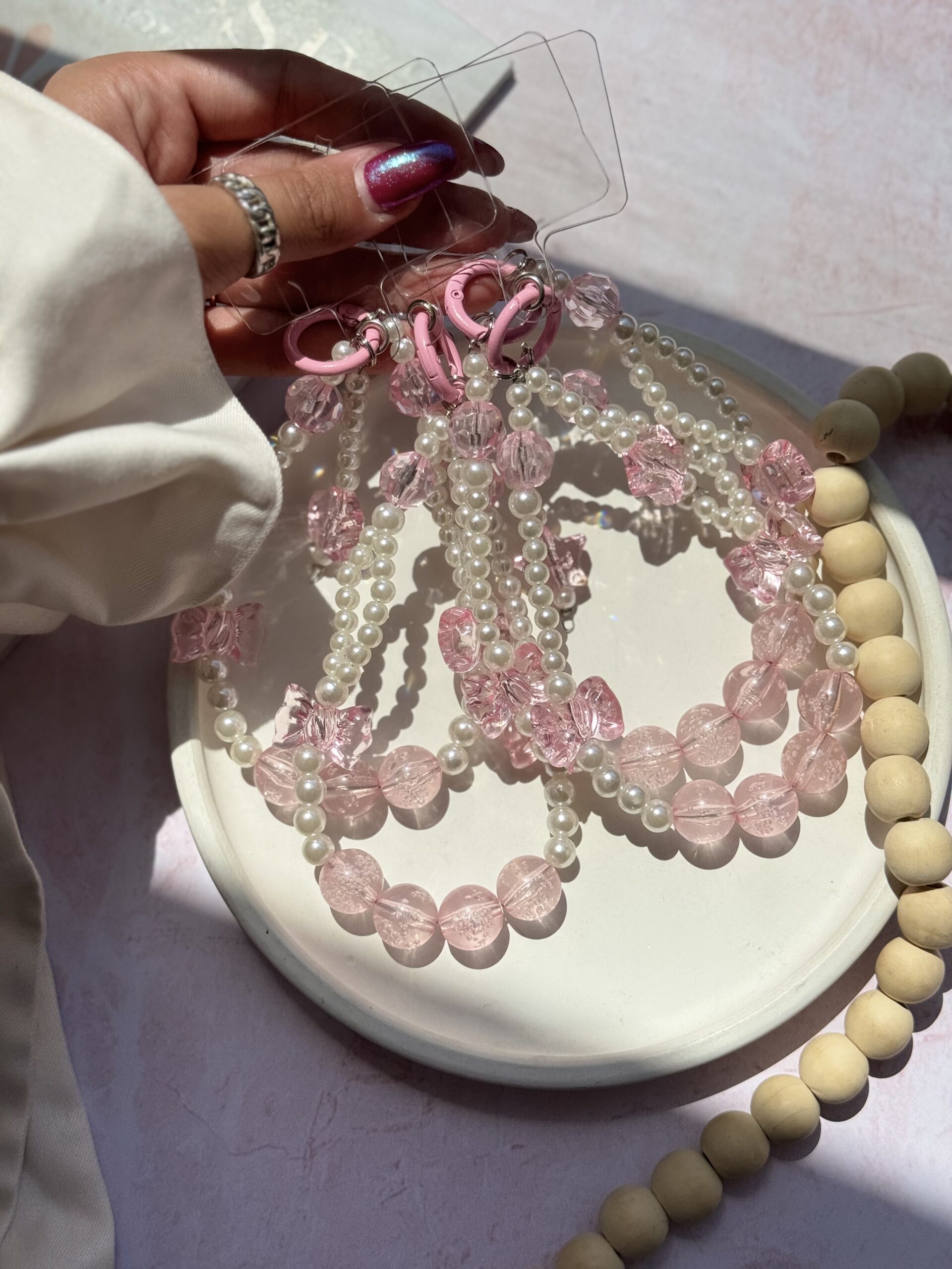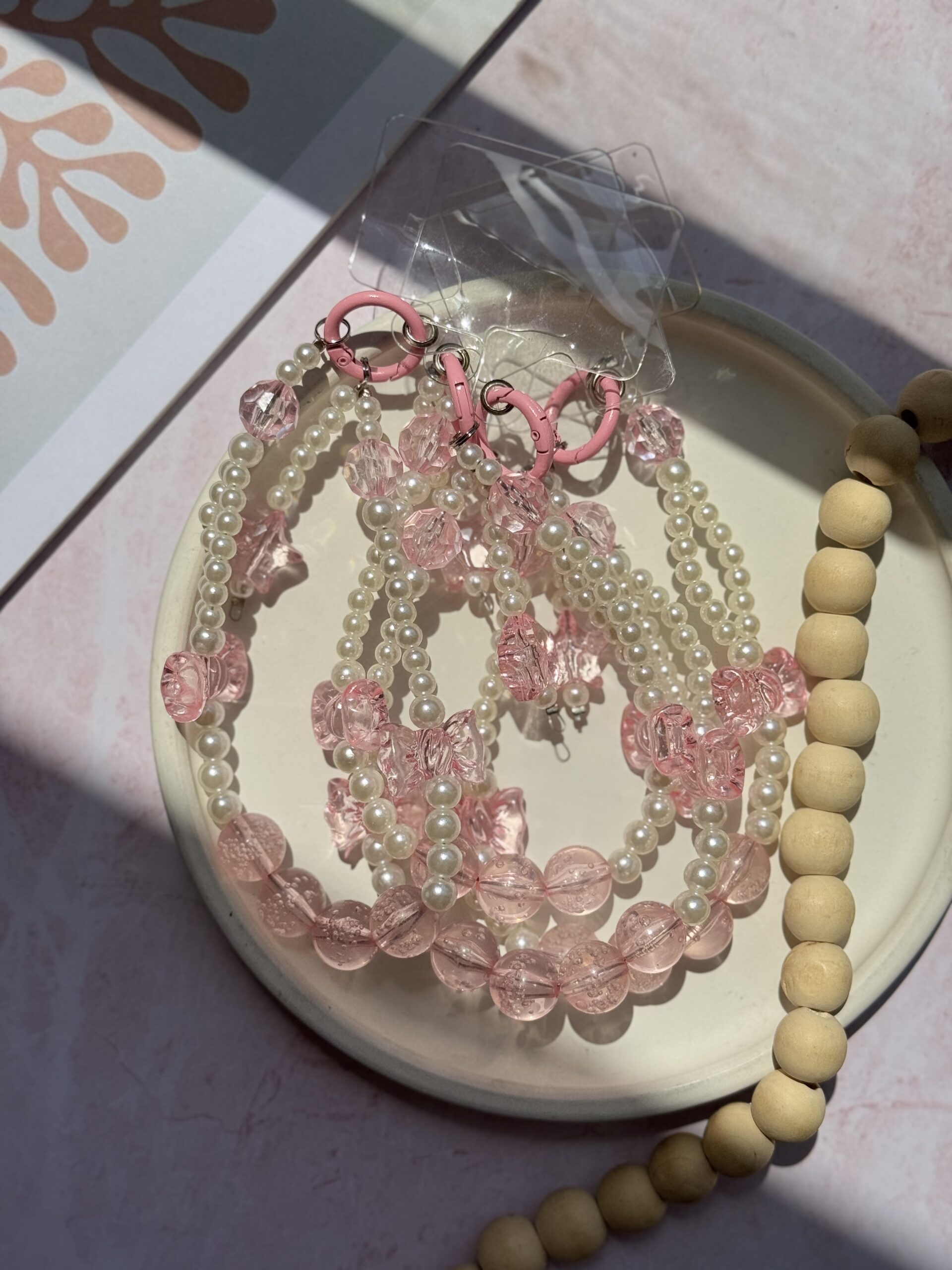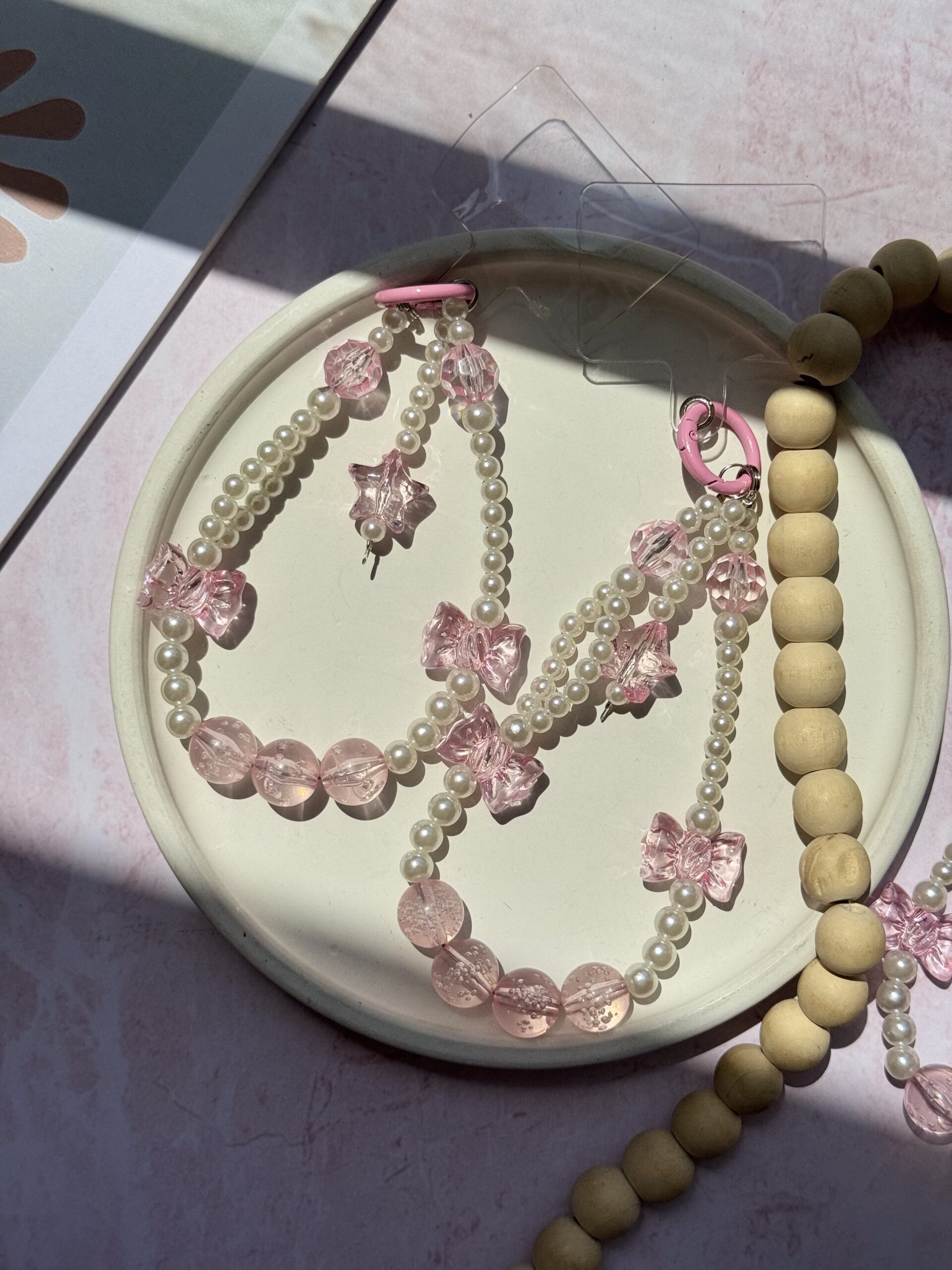 آویز مروارید و پاپیون صورتی (کدa0260)