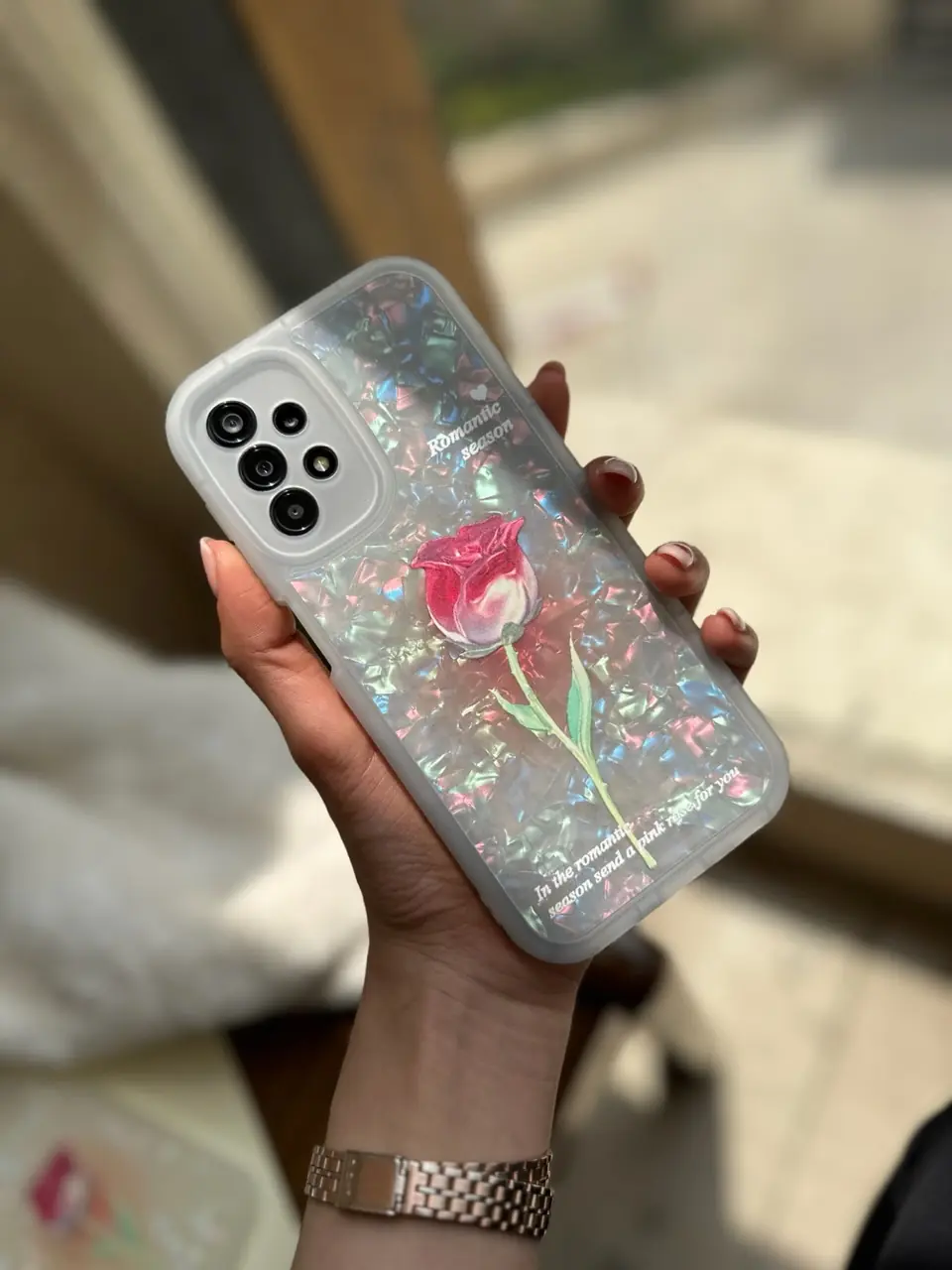 قاب گل رز یخی آیفون / سامسونگ / شیائومی (کدC1230)