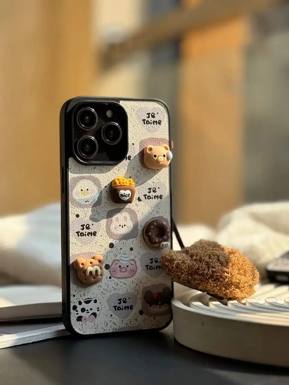 قاب آیفون سنجاق رزینی با طراحی برجسته و جزئیات فلزی، انتخابی خاص برای استایل‌های متفاوت و خاص‌پسند.