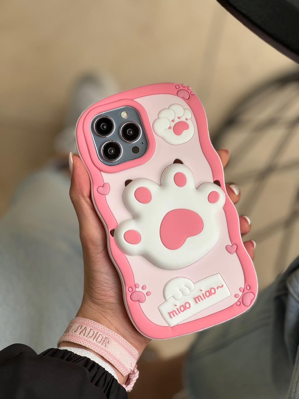 قاب پنجه گربه سیلیکونی صورتی آیفون / قابگوشی آیفون / فروش عمده قاب و لوازم جانبی موبایل/ دراپ شیپینگ