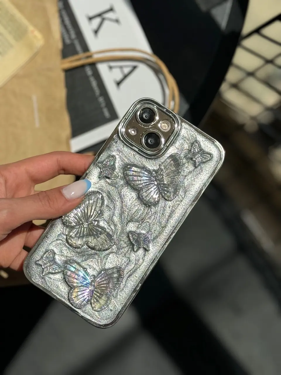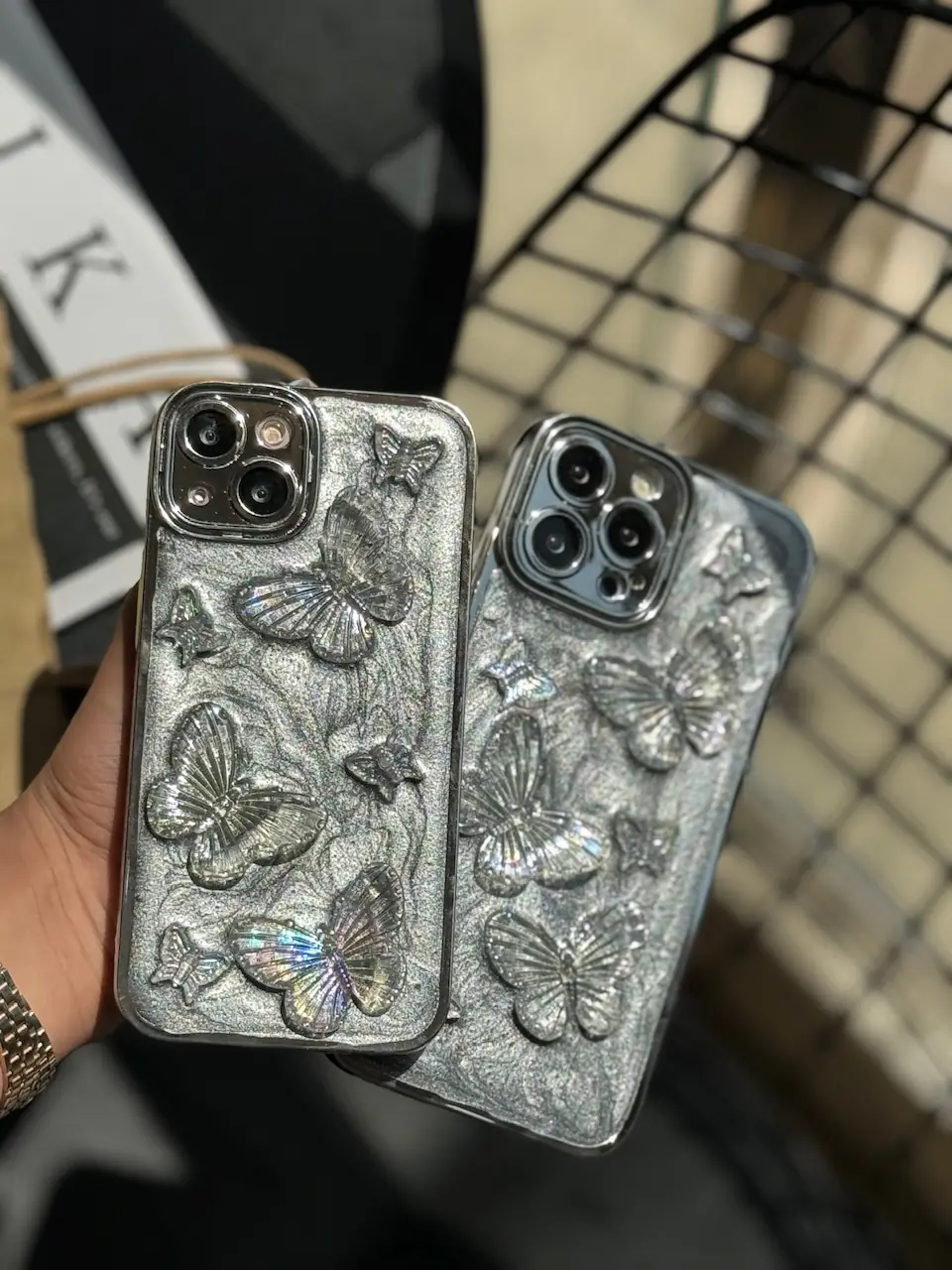 قاب آیفون پروانه بی‌نهایت دور لنز نگین‌دار با طراحی فانتزی و ظریف، انتخابی خاص برای افرادی است که به استایل متفاوت و شیک اهمیت می‌دهند.