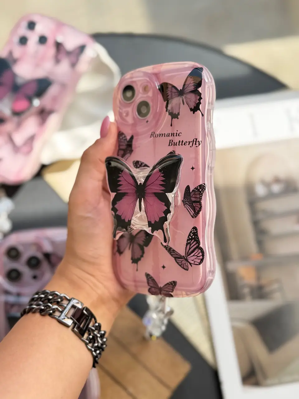 قاب آیفون پروانه بی‌نهایت دور لنز نگین‌دار با طراحی فانتزی و ظریف، انتخابی خاص برای افرادی است که به استایل متفاوت و شیک اهمیت می‌دهند.