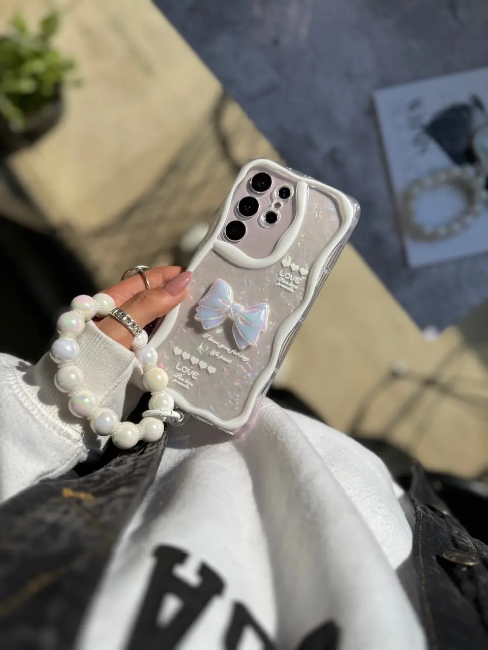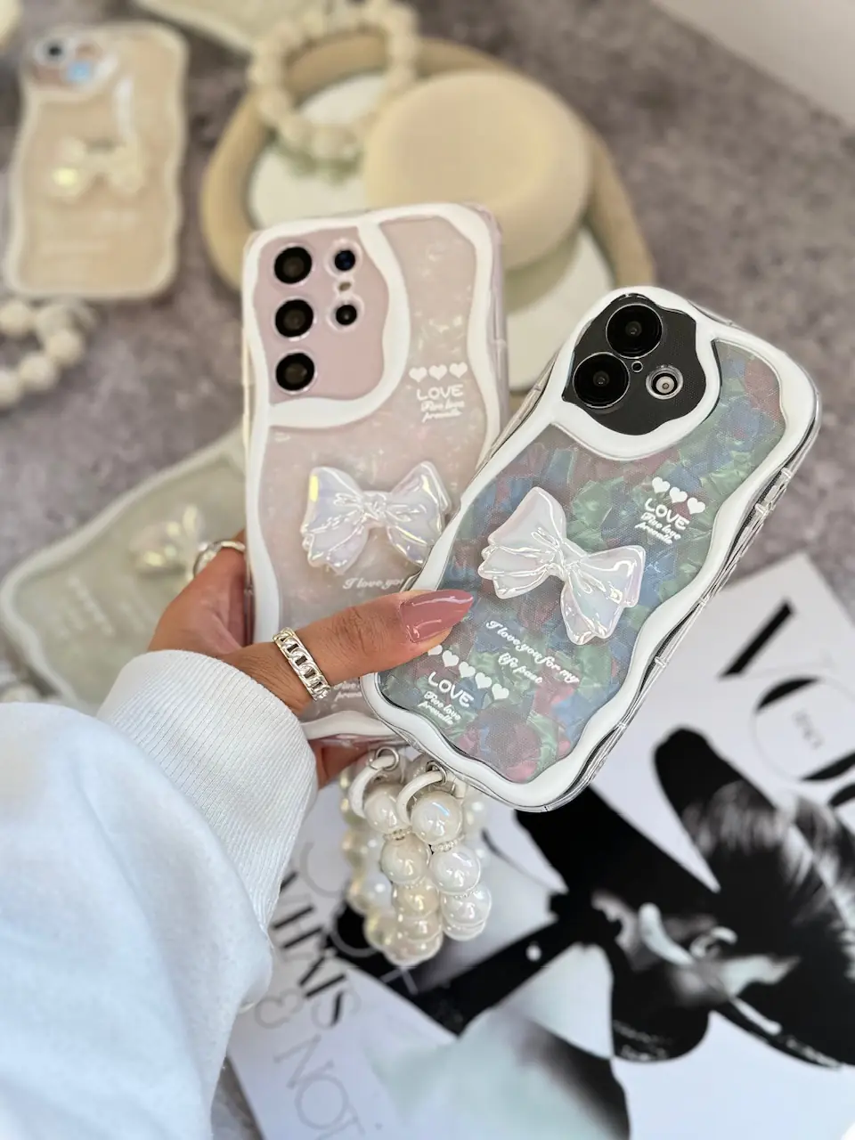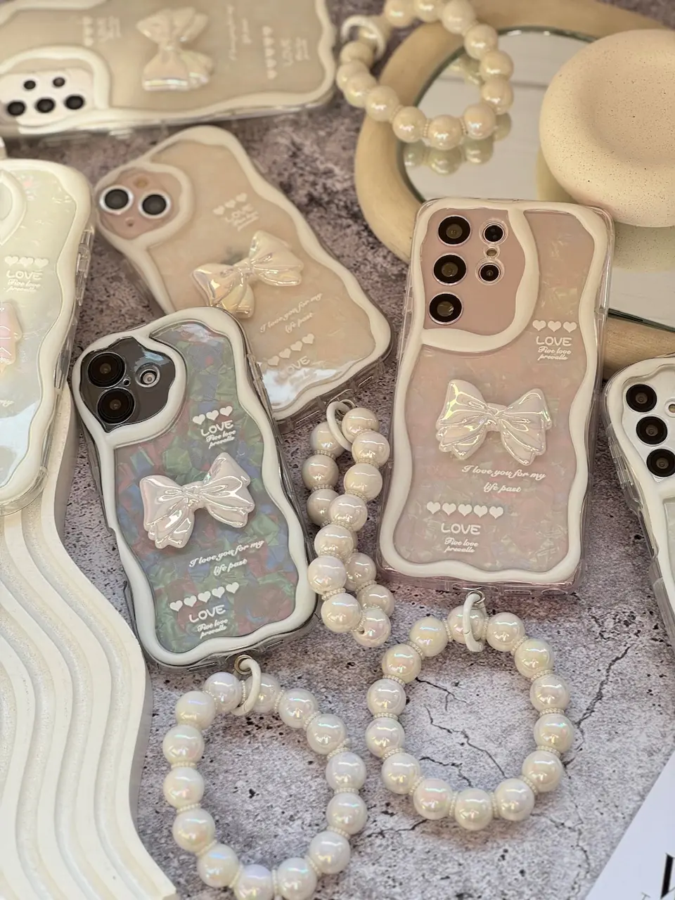 قاب Ribbon Love آیفون و اندرویدی با آویز (کدC1887)
