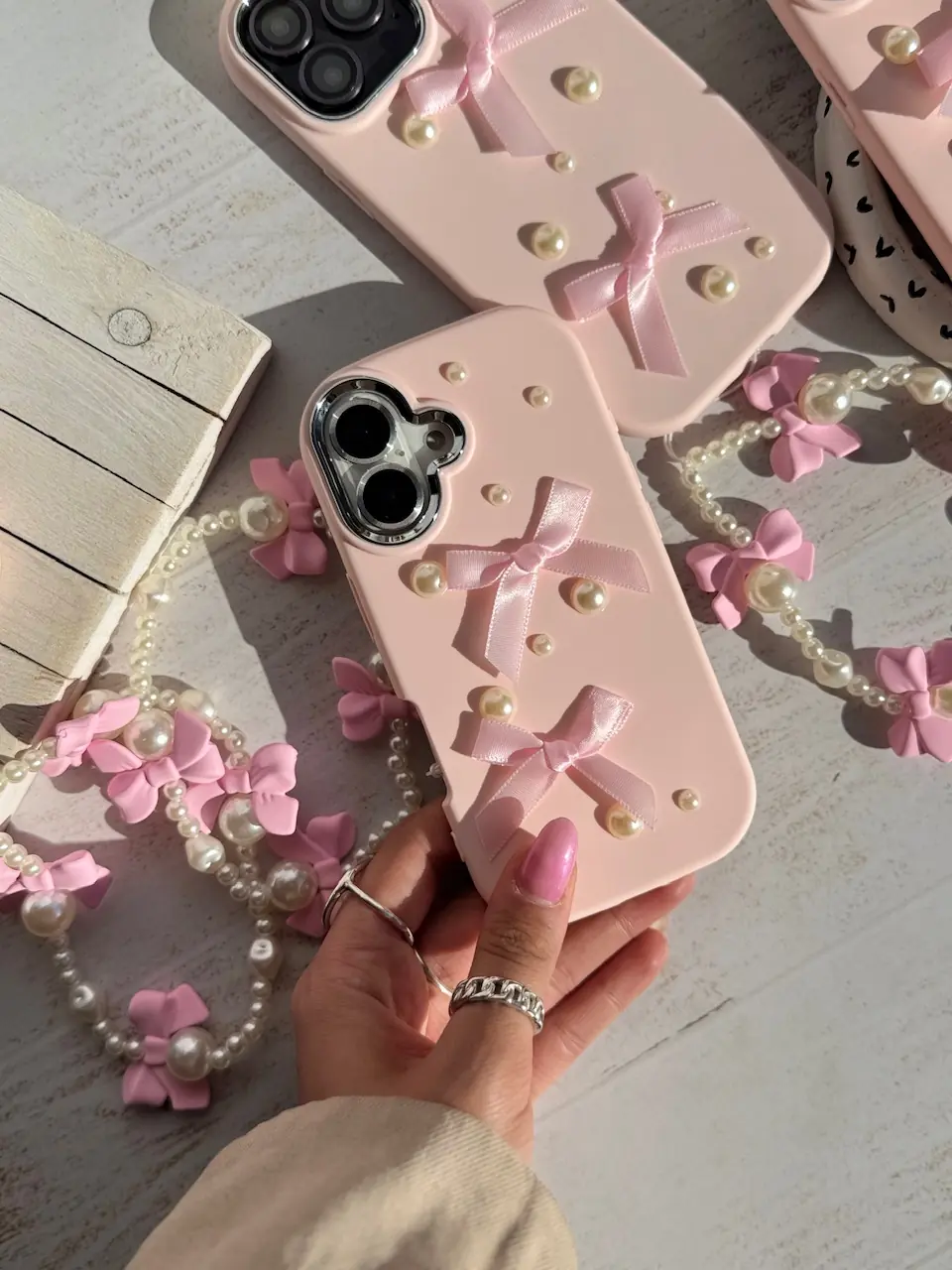 قاب پاپیون مروارید صورتی با آویز (کدC1959)
