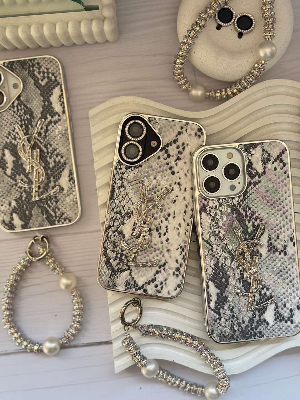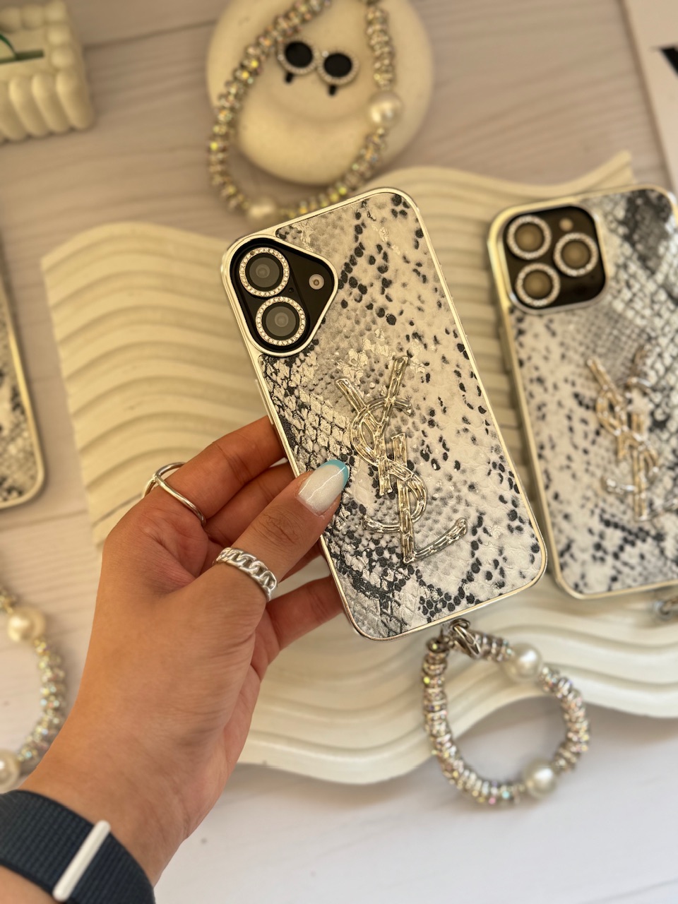قاب YSL پایتون با آویز و محافظ لنز نگین دار (کدC1983)