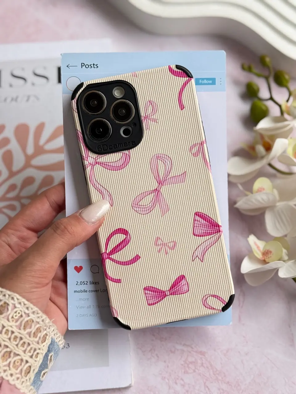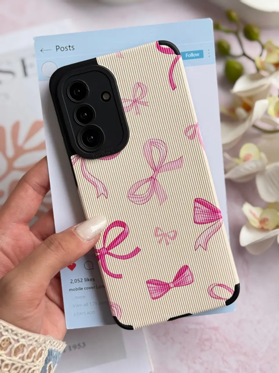قاب پاپیون صورتی کبریتی آیفون ، سامسونگ ، شیائومی (کدC2207)