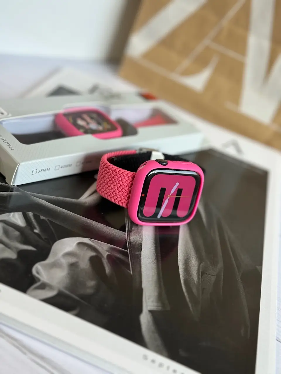 بند و گارد اپل واچ کشی صورتی مشکی (کدw5001)