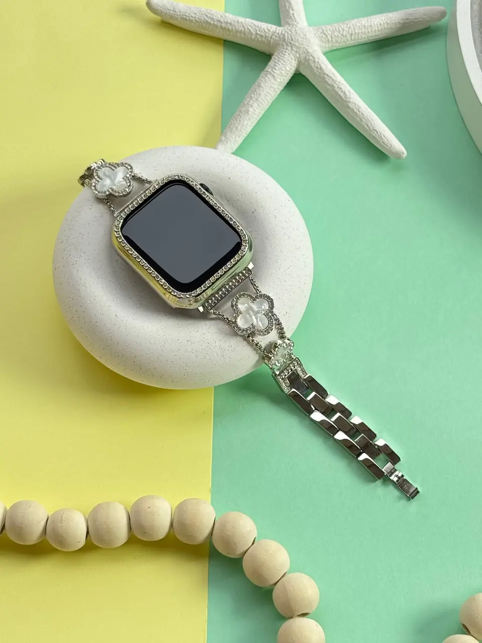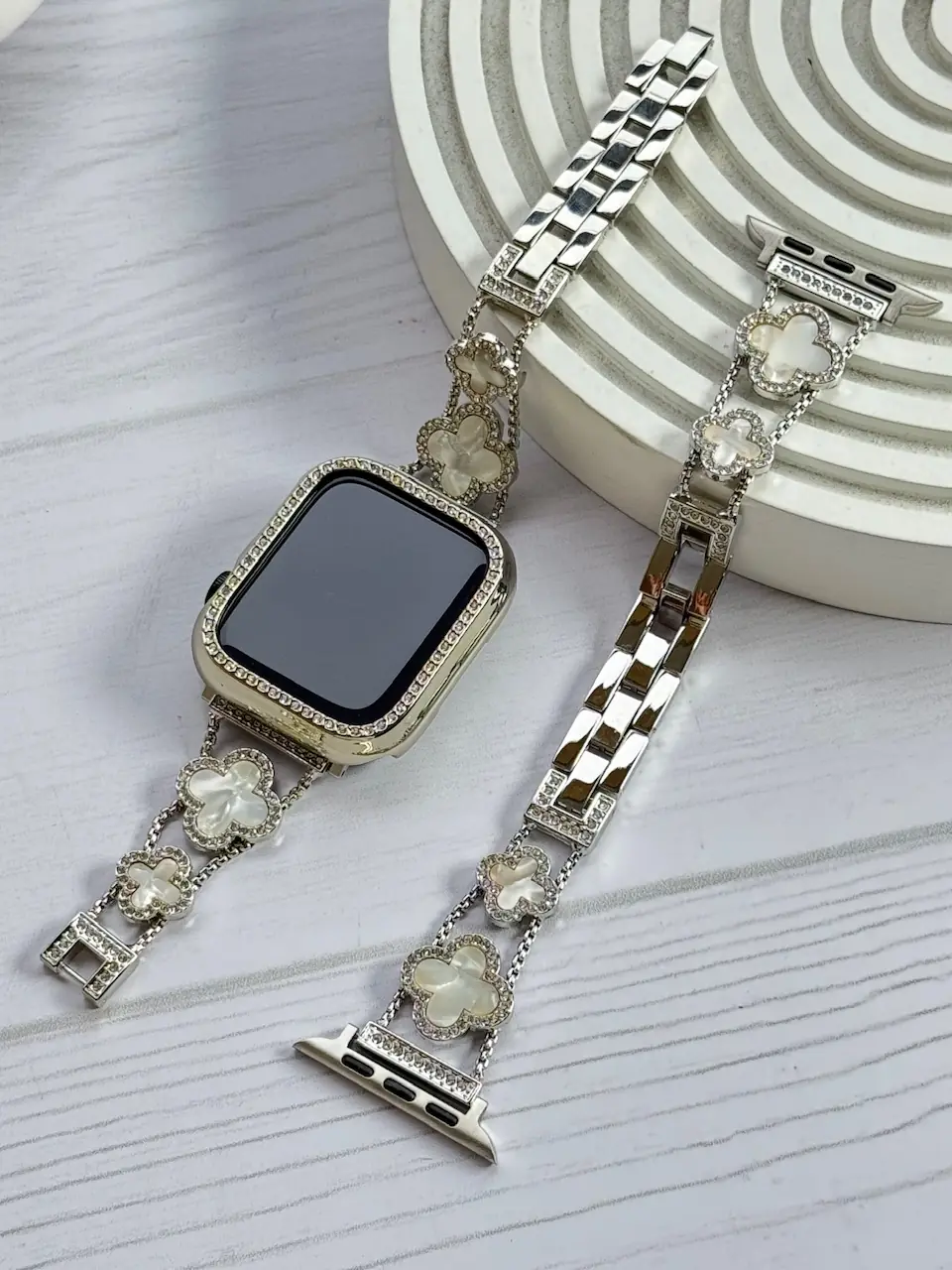 بند اپل واچ ون کلیف استیل + گارد نگینی (کدw5040)