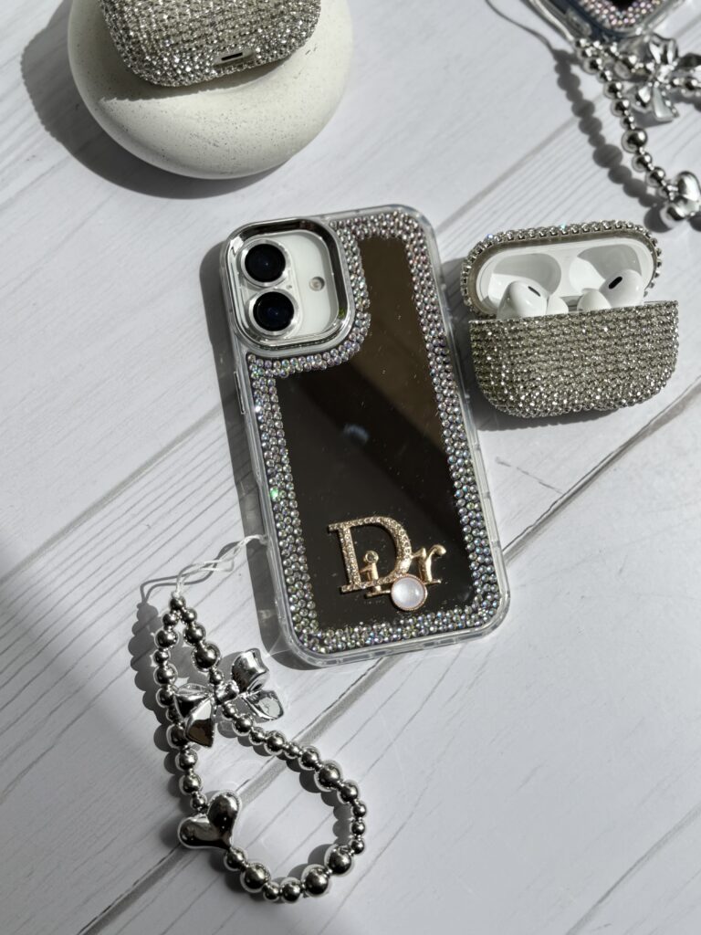 قاب Dior آینه ای دور نگین با آویز قلبی پاپیونی (کدC1989)